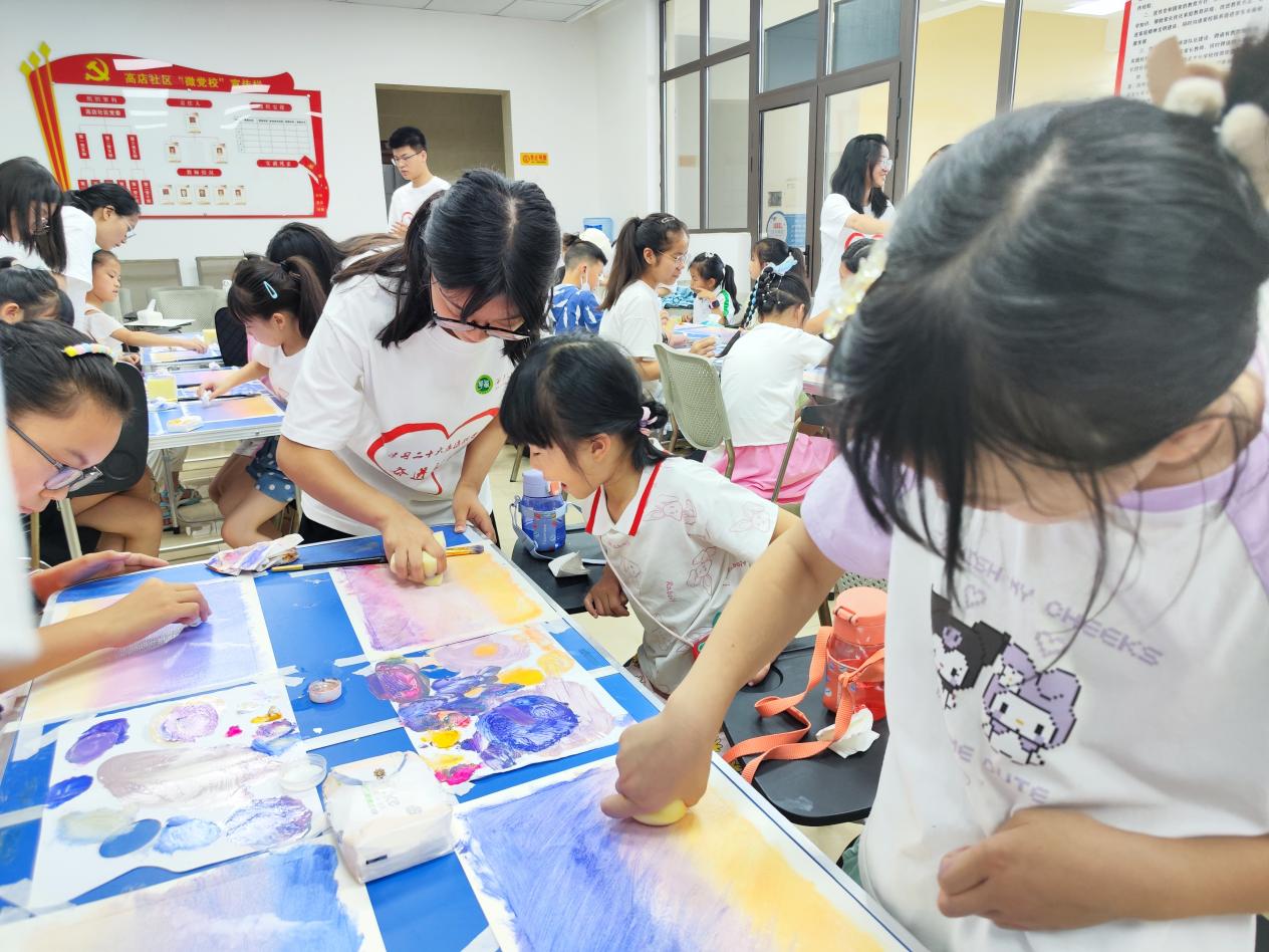 本次社会实践活动共联系到一个社区和一个幼儿园,为此实践团成员设计了五次主题活动,累计服务社区儿童50余人次,从认识刀画的起源开始,通过介绍与教学刀画的笔法技巧,引导孩子们发挥艺术创作的想象力,认识、了解并爱上中国非遗艺术文化。在每日活动开展的前一天晚上,实践团开会总结物资以及进行明日活动统筹安排。活动当日,实践团早早完成活动准备迎接孩子们的到来。主持人昂扬有力的声音让实践团和孩子们都对活动充满了期待。主持人介绍完当日主题之后,实践团老师便开始教学活动。在台上教学进行的同时,其他实践团成员也关注着每一个孩子,随时提供帮助与鼓励。从菁芙蓉幼儿园竞竞姐姐的《夜晚的草坪》开始,再到高店社区奇奇哥哥的《傍晚的彩霞》,魏政哥哥的《彩霞下的草坪》,书琴姐姐的《夏日的沙滩》,最后壶壶哥哥的《冬日的雪人》,还有充满童趣和活力的趣味活动,小朋友们做手工、做科学小实验……