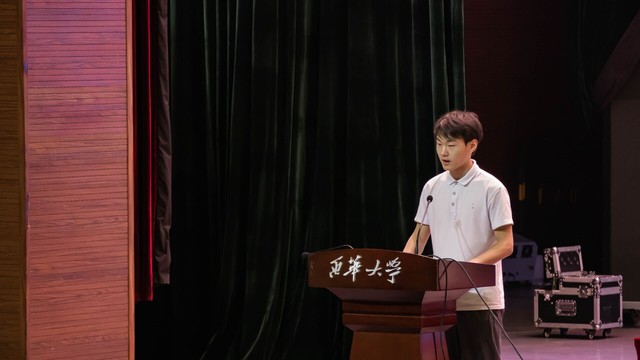 机械设计制造及其自动化专业罗睿熙同学代表全体2023级新生发言。他向老师们郑重承诺:在西华机械的大舞台上,一定将个人的理想与国家和民族命运融为一体,以时代为背景,以学院为舞台,谱写人生新篇章,争做有社会责任、有创新精神、有专门知识、有实践能力、有健康身心的新时代“五有”人才。