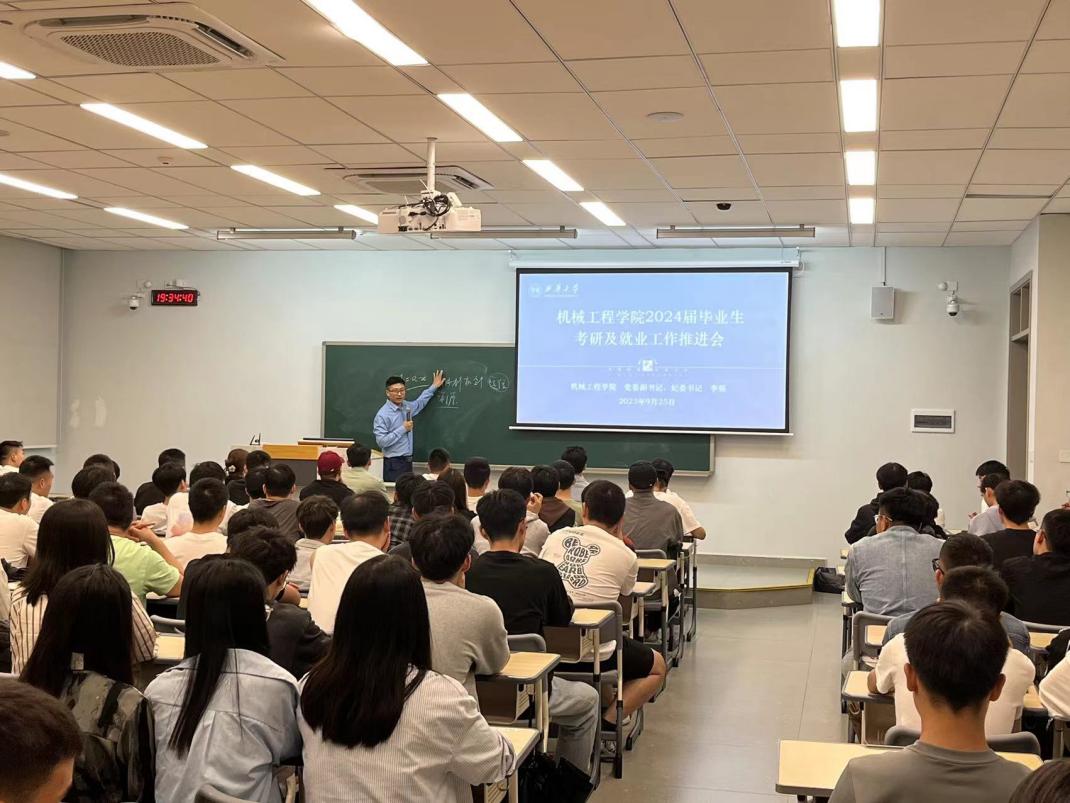 李强结合机械学院近年的升学率、深造率以及考研报录比等数据,为同学们详细介绍了当前考研的形势,并与同学们分析来往届毕业生考研失利的原因,让同学们要正确选择并面对考研与就业。对毕业生面临的各种选择以及考研后如何做就业决策进行了就业决策分析。第一就是要有正确的择业观,其次要在择业时进行自我完善及做好心理准备。本科生毕业是否一定没有前途呢?李强认为本科生毕业同样可以找到好工作,并向同学们列举了许多往届西华大学bv伟德国际体育官方网站校友的实例,这无疑为同学们打了一针强心剂。
