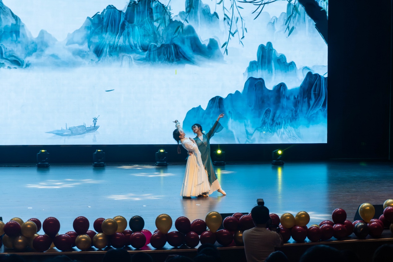 舞台上,同学们的节目丰富多彩,开始的是第一篇章,主题为向着诗的远行。第一个亮相的节目是⟪开场舞⟫,八位舞者用他们的热情,为整个迎新晚会写下精彩的第一笔。第二个节目⟪飘向北方⟫,通过流行音乐的方式诉说了北漂人的生活,他们挣脱生活枷锁,踏上北漂的远行;他们都有一个诗和远方的梦想。希望他们永怀最初的梦想,奔向更远的远方。紧随其后,古典舞⟪缘起⟫由两名舞者共同演绎,她们轻盈的舞蹈配合着优美的音乐,使现场观众从中体会了中国古典舞蹈的韵味和优雅。经典歌曲⟪千千阙歌⟫更是带观众领略独属那个年代的魅力。