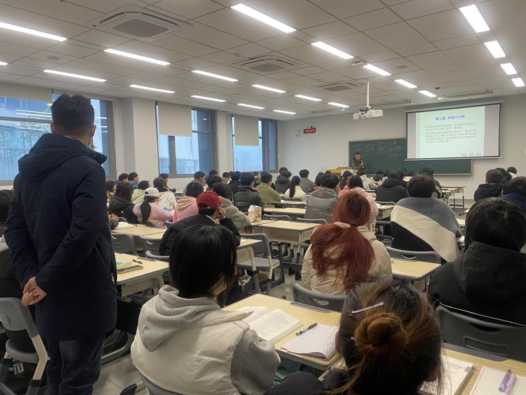 知识在课堂,开学新风貌。27日7:50,在李强副书记带队下,辅导员薛敏、周岐燃、黄霭琳一同进入课堂,了解同学们开学课堂学习状态,督促学生带上书本、关掉手机、抬头听课,引导学生重视课堂、珍惜课堂、享受课堂。一寸光阴一寸金,新学期希望同学们严格遵守课堂纪律,认真学习,收获知识。