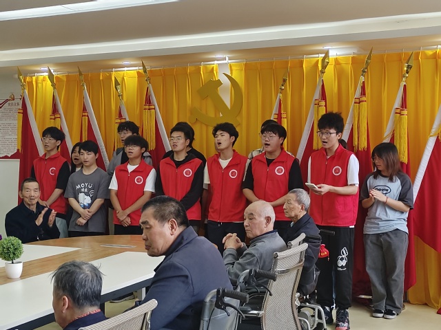 活动当日,全体成员按时出发,顺利抵达成都晚霞社会服务中心。在活动过程中,同学们精心准备了手势舞表演,并向老人们献上了红色歌曲的合唱。现场氛围温馨而热烈,老人们的笑容中流露出满满的幸福与满足。随后,一场别开生面的“保龄球”大赛拉开帷幕,老人们也热情参与,充分展现了他们的活力与热情。在互动环节,部分老人还与同学们分享了自己的人生故事,这些分享不仅丰富了活动内容,也让在场的每一个人都深切感受到了老人们的智慧与风趣。活动结束,志愿者和老人们合影留念。