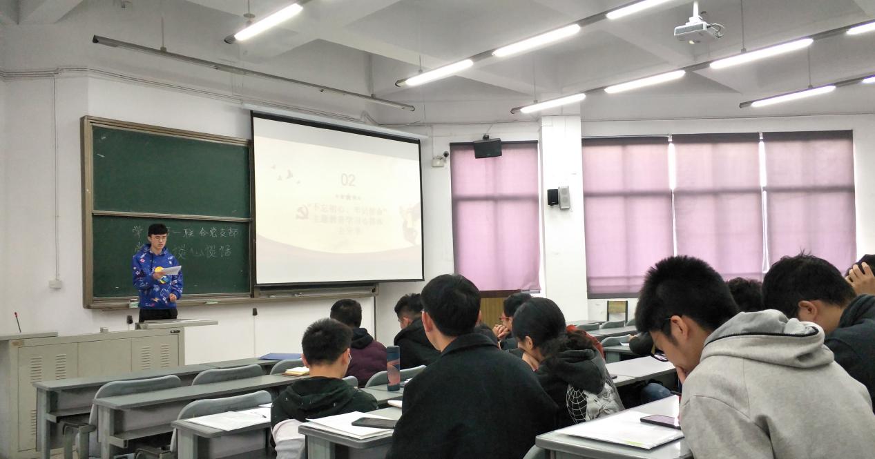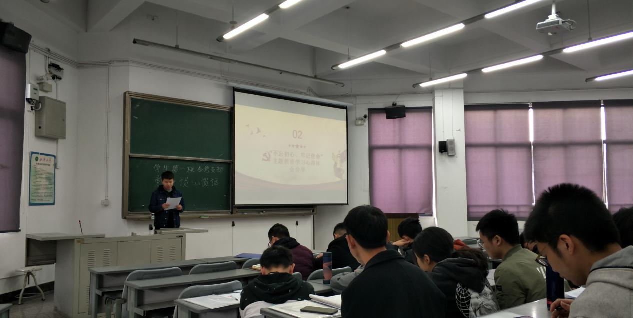 首先,孙豪同志简单回顾了“不忘初心,牢记使命”主题活动。随后,支部党员代表分享了自己“不忘初心、牢记使命”主题教育学习心得体会。胡有章同志指出:“我们作为当代大学生,更要牢记初心使命,推进自我革命。牢记初心使命是坚持自我革命精神的具体彰显,勇于自我革命是我们党永葆先进性和纯洁性的制胜法宝。在新时代把党的自我革命推向深入,就要坚定理想信念,加强党性修养。站在新中国成立70周年的历史新起点上,把不忘初心、牢记使命作为加强党的建设的永恒课题,我们才能砥砺前行,走好新时代的长征路。”
