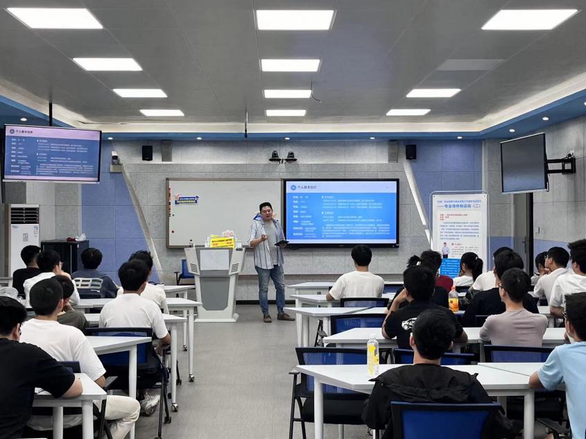 张然老师通过分享个人大学求学经历和工作经历,用幽默的语言,带领同学们回顾了大学生活和工作的点点滴滴。他强调,大学不仅是知识的殿堂,更是人生重要的成长阶段。在这个阶段,同学们要努力丰富自己的大学生活,学会制定学业生涯规划,为未来的生活和工作做好准备。他鼓励同学们要制定明确的学习目标,大学期间积极参加各种学术竞赛和实践活动,提高自己的综合竞争能力。