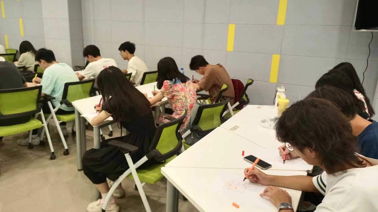 讲座一开始,吴颖老师就为每位同学提供一张水彩笔和画纸,让同学们能够将自己的压力画在纸上,从它的大小、质地、形状、颜色等方面感受自己的压力,并让大家分享看到它时的感受。