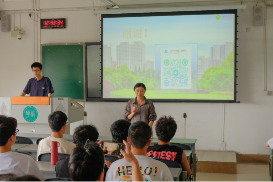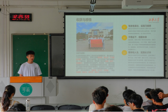 接着,学院2023年暑假“三下乡”优秀项目“西华大学赴南充实践团”的负责人杨子锋为大家进行经验分享。杨子锋紧紧围绕申报书的撰写,实践活动开展过程中注意事项及实践成果的总结三个方面进行了详细的介绍。同时,针对同学们关于“三下乡”相关疑问进行了针对行的解答。