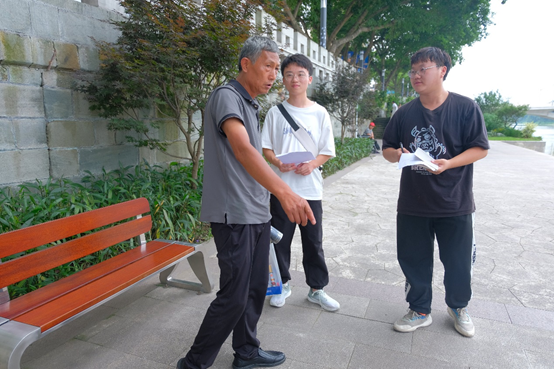 乐山红色实践团在来到五通桥区后,在附近人口密集的地区和红色景区对当地居民进行关于当地红色事迹以及红色精神的了解程度的调查访谈。首先,向被调查访谈的民众介绍团队的组成,告知要访谈的相关内容,并征得访谈人员的访谈同意,调查访谈正式开始。调查访谈进行顺利,在两名乐山红色行动团成员采访,一名乐山红色行动团成员记录,两名乐山红色行动成员拍摄来完成调查访谈。现场氛围轻松欢快,老爷爷、小朋友等许多人,积极配合调查访谈。活动顺利结束。