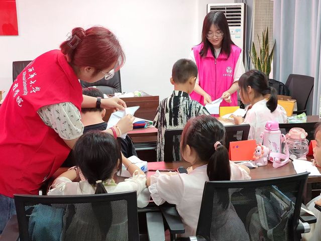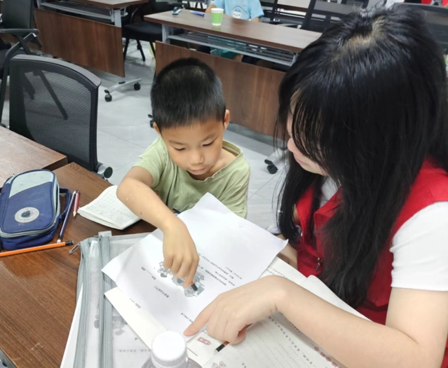 活动伊始,由志愿者们耐心地辅导孩子们完成暑假作业。用通俗易懂的方式为孩子们讲解难题,帮助孩子们巩固知识,提高学习效率。完毕后,孩子们迎来了充满活力的音乐课学习。志愿者们通过生动有趣的教学方式,带领孩子们学习演唱爱国红歌,孩子们跟随节奏欢快地歌唱,脸上洋溢着幸福的笑容。随后,“分享心目中的英雄”主题分享活动拉开帷幕。孩子们踊跃上台,讲述着自己心目中英雄的故事,志愿者们引导孩子们从英雄的事迹中汲取力量,培养他们的爱国情怀和勇敢精神。现场氛围良好。