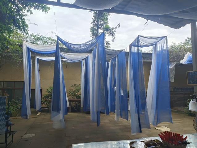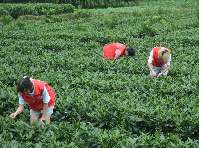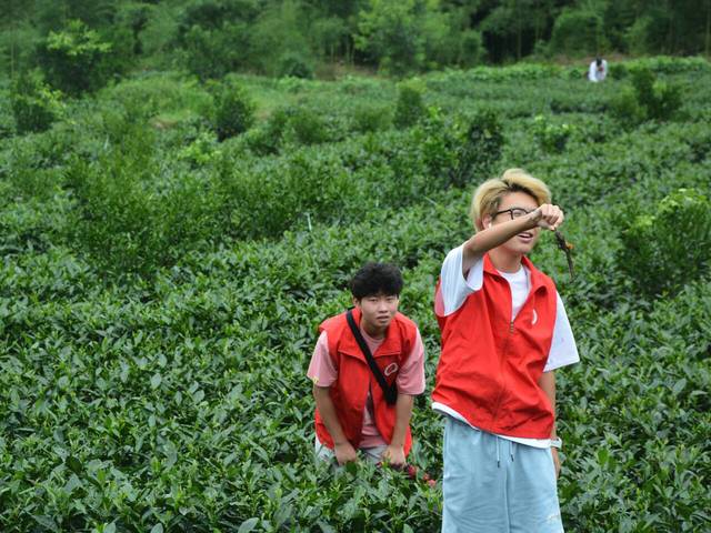 7月11日,团队进行了扎染体验。扎染的步骤大致分为捆扎、浸染、氧化、漂洗、固色、阴干这六个步骤。同时,队员通过与店长的交谈了解到扎染不仅仅是一种染色工艺,更是一种文化、一种情感的传承。随后,团队帮助当地茶农进行采茶活动并与当地茶农进行交流,了解到茶对于他们来说,不仅是赖以生存的农作物,更是对美好生活的向往。