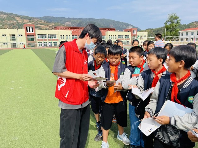 图2 崔乂文在森林草原防灭火卡点驻守工作中 图3 崔乂文在镇中心校为学生讲解应急疏散知识