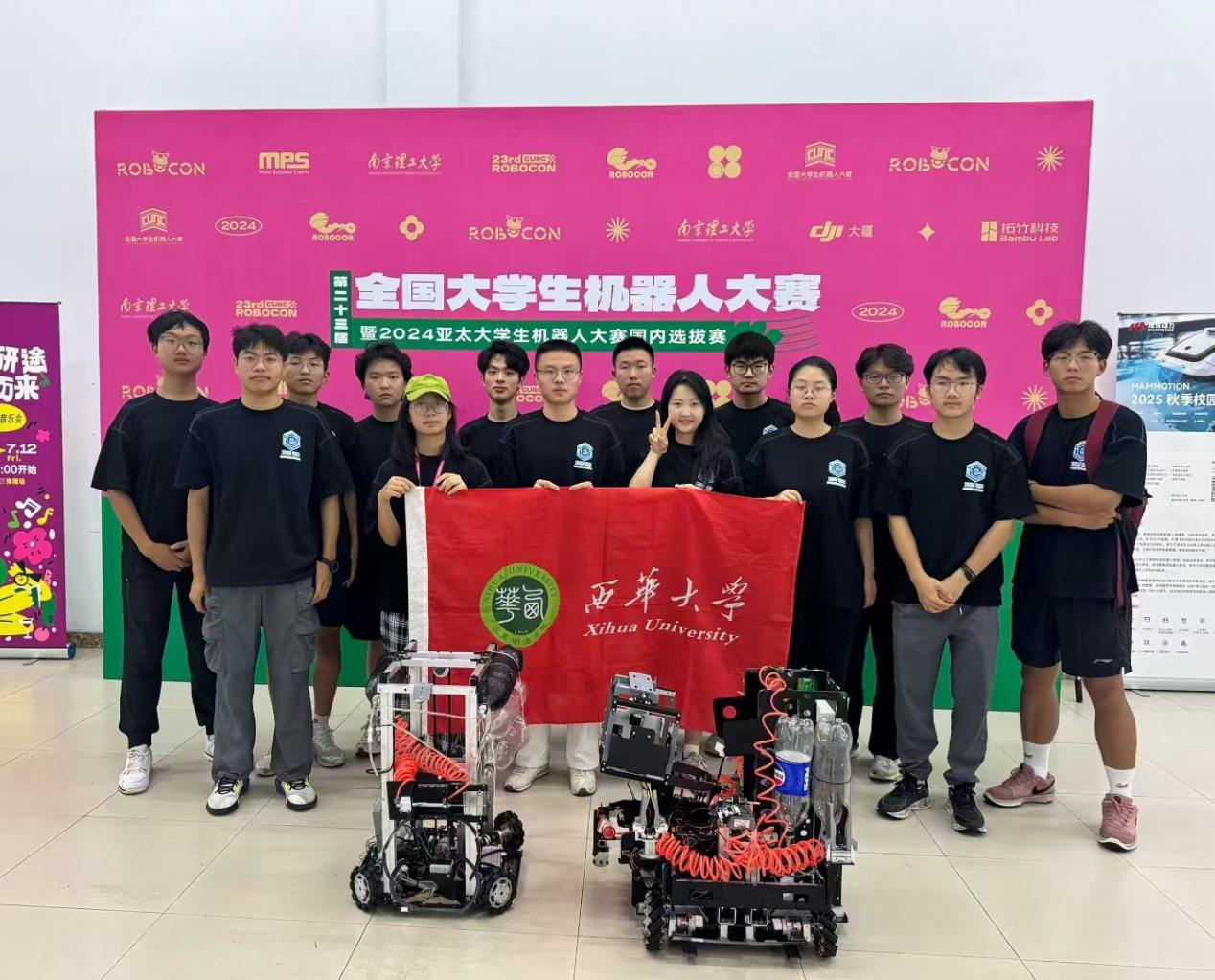点击:75 2024年7月7日,西华大学bv伟德国际体育官方网站机器人研究中心前往江苏省江阴市南京理工大学参加第二十三届全国大学生机器人大赛,同学们在比赛中大放异彩,成绩斐然。经过7天的激烈角逐,我校代表队最终荣获“2024颗粒归仓”主题赛全国三等奖以及2024颗粒归仓竞技赛(操作挑战赛)全国三等奖的优异成绩!