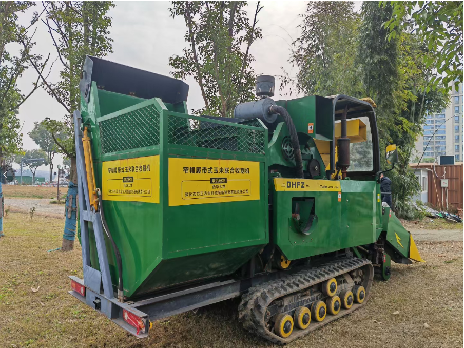 向棠湖中学捐赠窄幅履带式玉米联合收割机科研样机
