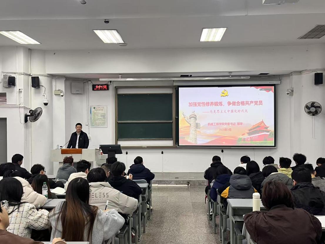 开班仪式结束后,学院党委书记郑宇以“加强党性修养锻炼,争做合格共产党员”为题对本次入党积极分子和发展对象进行了党校第一讲,以马克思主义中国化时代化为视角,紧密结合党的二十大精神,回顾了党的百年发展历程。郑宇同志深度剖析党的发展历程,让学员们了解了马克思主义中国化发展的进程,也帮助学员们加深对伟大建党精神的理解,鼓励学员们将学习到的理论知识用于生活和实践,坚持实事求是的基本原则,不断地提高自己的党性修养。希望学员们坚定政治立场,做到言行一致,表里如一,将个人追求融入到党和人民的事业中去,用实际行动践行党的宗旨和使命。