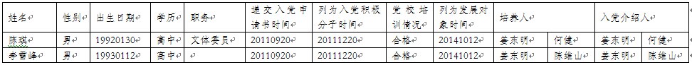 根据机械学院支部委员会2014年10月12日决定,拟于近期讨论接收陈琪、李雪峰同志为预备党员,现将有关情况公示如下: