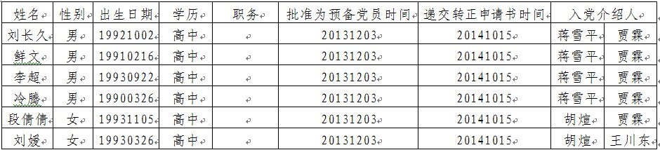 根据机械工程与自动化学院支部委员会2014年11月20日决定,经机械工程与自动化学院学生第五联合党支部提名,机械学院党总支审批,拟将刘长久等六名同志转为中共正式党员,现将有关情况公示如下: