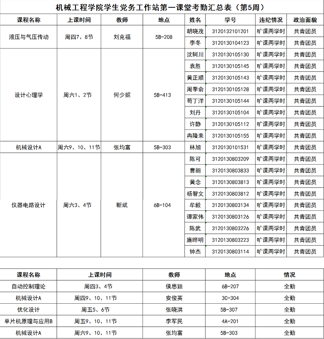 【考勤公示】机械学院学生第一课堂(第5周)考勤公示