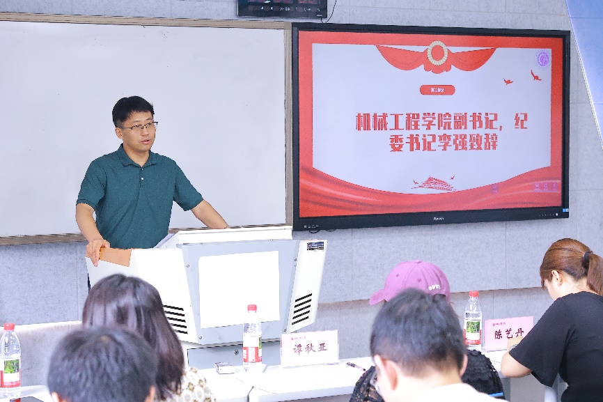 学院党委副书记、纪委书记李强发表致辞。李强书记对第 22 届学生会全体成员过去一年来的努力和取得的成绩给予了高度评价与充分认可。他强调,第23届团委(学生会)全体学生干部要强化思想引领、牢记服务宗旨、加强自身建设,不负使命,砥砺前行,为学院的发展贡献更多的青春力量。