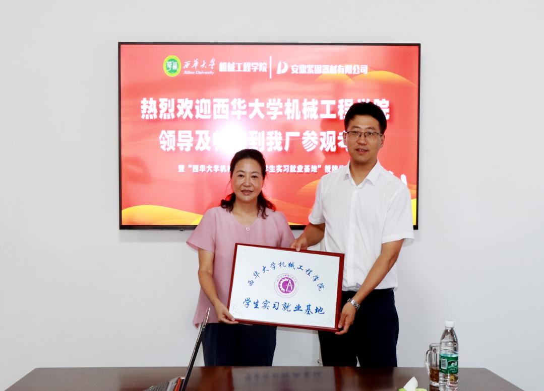 座谈结束后,校企双方举行了“大学生实习就业基地”授牌仪式,李强代表学院向安鼎公司授予铭牌,蒋友红董事长代表公司接牌。