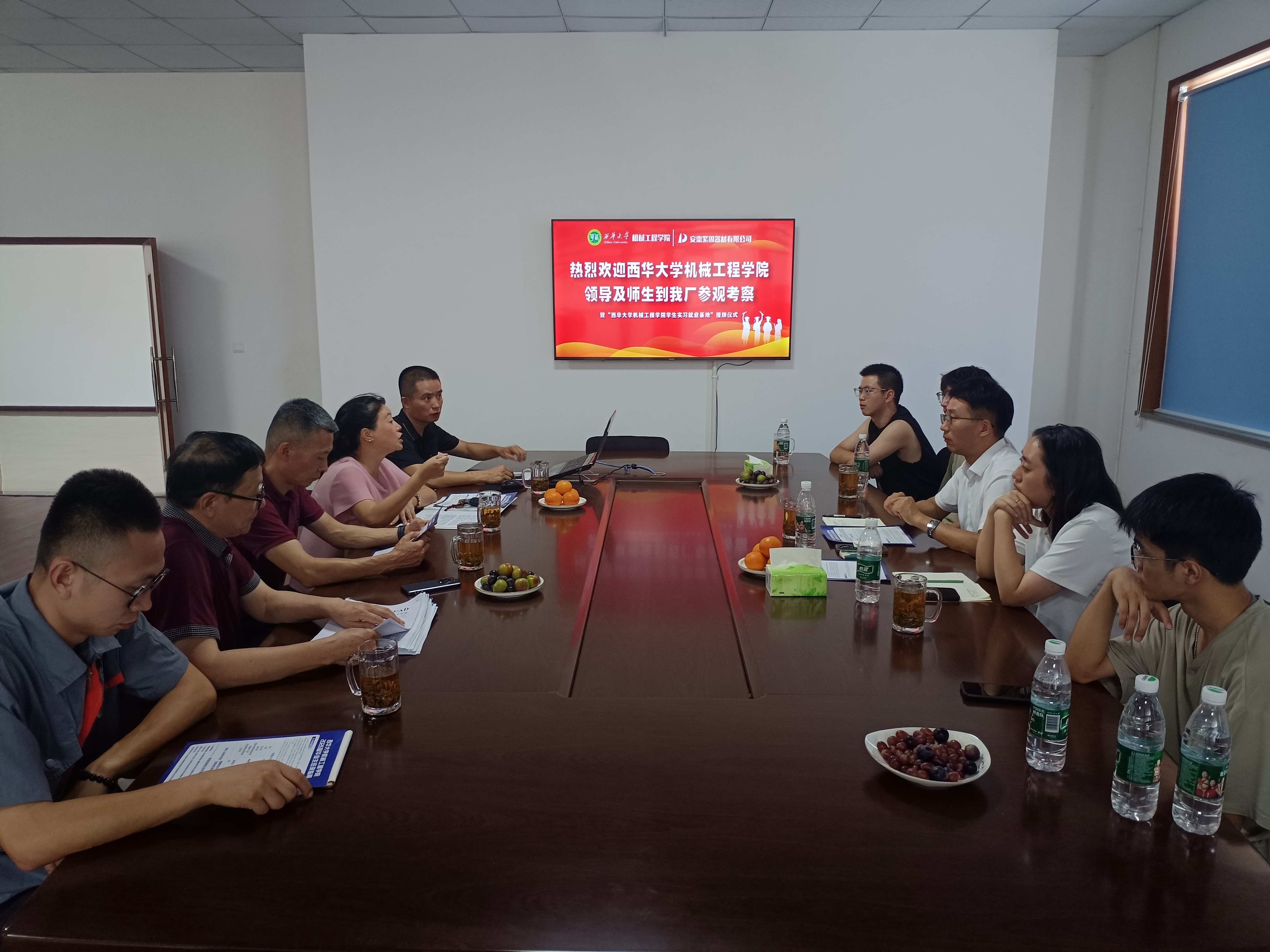 座谈会上,蒋友红首先对李强师生一行表示诚挚欢迎。他详细介绍了公司的发展历程、主营业务、核心技术、市场布局以及未来发展规划。她表示,安鼎公司一贯重视与高校的产学研合作,西华大学bv伟德国际体育官方网站在人才培养和科研创新方面成果显著,希望能与学院建立长期稳定的合作关系,实现优势互补、互利共赢。李强对安鼎公司的热情欢迎表示衷心感谢,并向企业介绍了学校和学院近年来在学科建设、人才培养、科学研究、毕业生就业等方面取得的成就。他提到,校友是学院最宝贵的财富和骄傲,学院始终心系校友发展,高度重视校友工作。蒋友贵校友作为学院79级的优秀校友代表,毕业后凭借扎实的专业学识和不懈的奋斗精神在业内取得认可和成就,为母校和学院赢得了称赞。