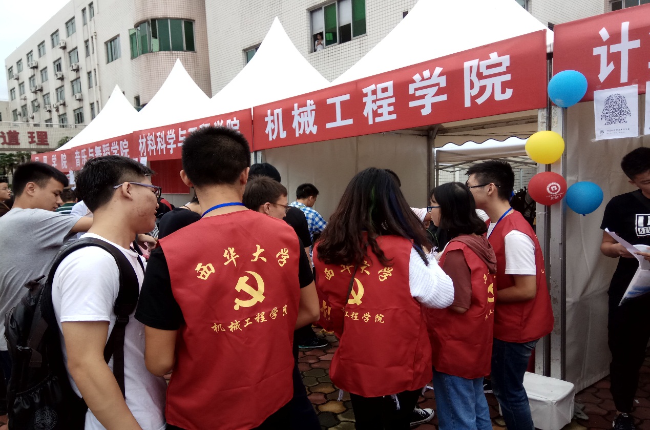 在本次迎新活动中,学院学生党务工作站实行分部门值班待命的方式,和学院团委学生会一起,在设置于三教的学院迎新工作点等候新生。志愿者们身穿红色的志愿者服装,佩戴着工作牌热情周到地开展工作。除了协助学院维持报到现场的秩序外,志愿者们还积极帮助新生们搬运行李、指引路途,得到了新生及家长们赞扬和感谢。