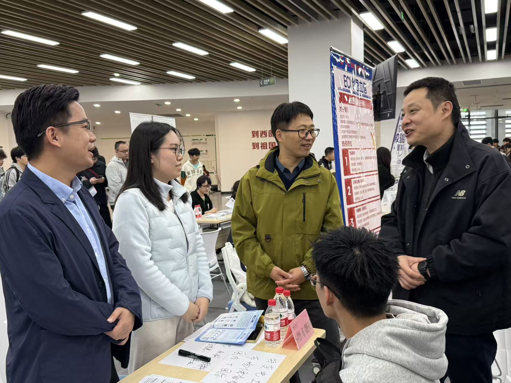 双选会现场,学院党委书记郑宇、副书记李强走进双选现场,与各大企业招聘负责人亲切交谈,详细询问岗位需求、薪资待遇、职业发展路径及对毕业生能力素质的要求,认真听取企业对学院人才培养的意见建议,并向长期支持学院就业工作的用人单位表示感谢。
