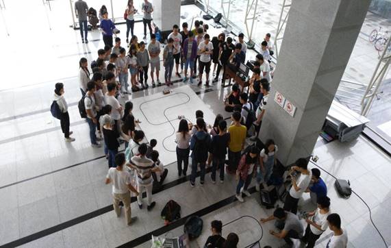 比赛自5月份开始以来,共有来自机械、汽车、电气等各个学院的60余支队伍报名参赛。比赛之前各队伍都要经过专业培训——3D建模培训和机器人程序培训。决赛最终成绩由两部分组成,70%是比赛者的比赛用时,30%是比赛者参赛机器人的外观投票数。比赛开始前,选手可自己的巡线小车送上赛道,试跑多次。比赛过程现场气氛步入高潮,最终成绩最优异的小组只用了将近23秒行完了全程,第二名和第三名也只与冠军相差一两秒。11:30比赛结束,所有参赛者的成绩记录完毕,29号小组荣获一等奖;19号等3个小组荣获二等奖;4号等5个小组荣获三等奖;24号等6个小组荣获优秀奖。