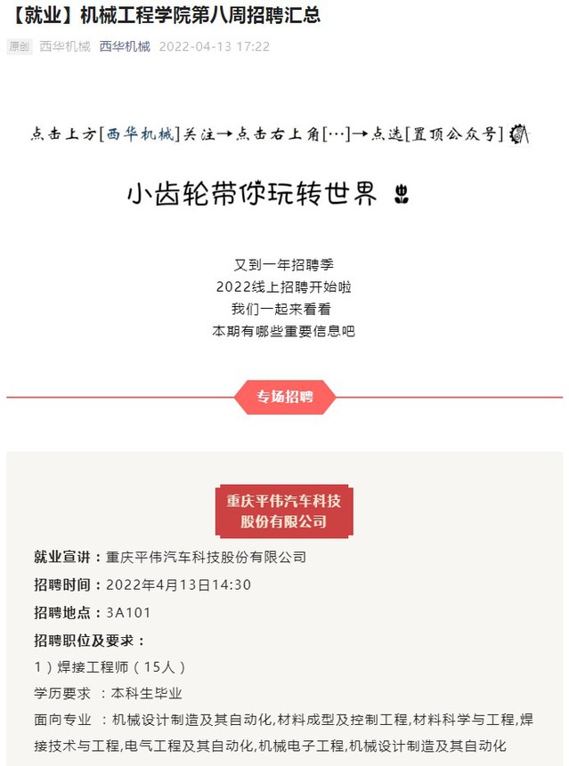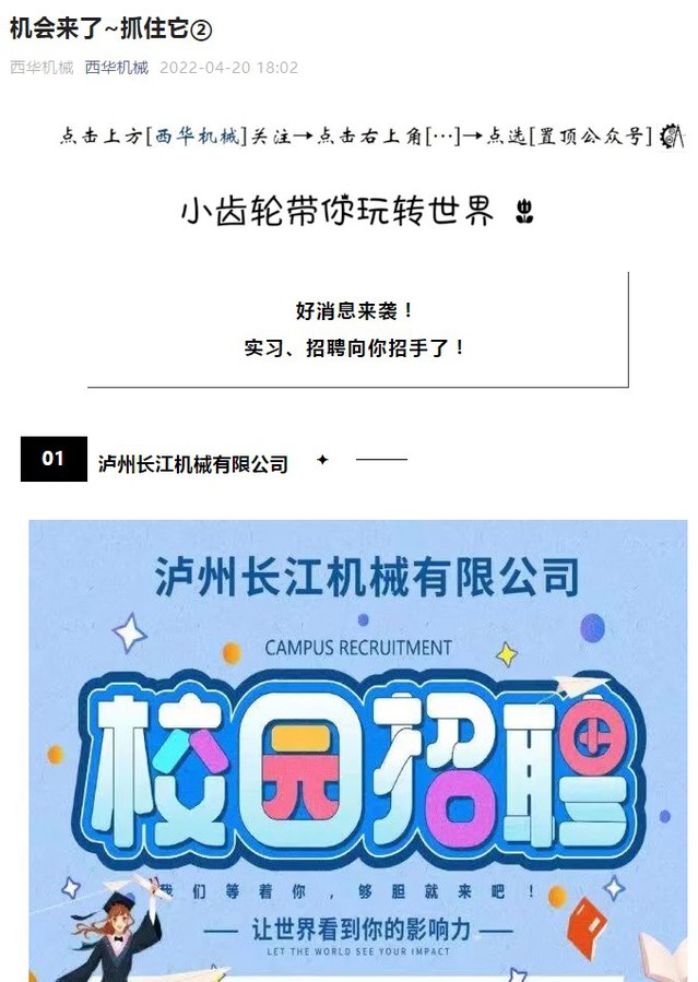 西华机械公众号就业资讯