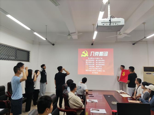 会议最后,党支部书记崔青青老师带领预备党员举起右拳面对党旗铿锵有力的宣读入党誓词!通过本次支部大会,各位党员同志更加明确了自己的学习目标和前进动力,更加坚定了对党的忠诚!