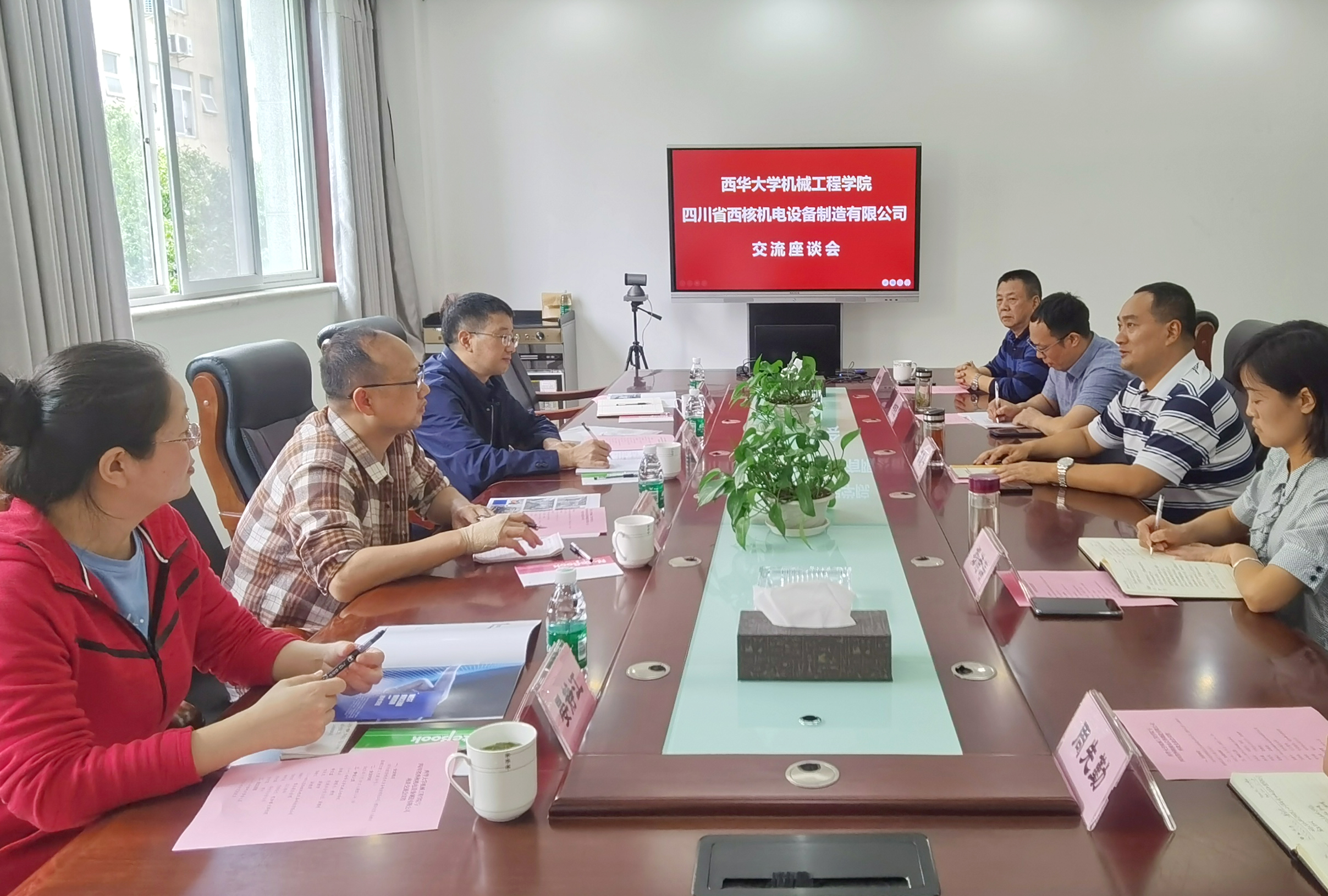 校企双方在座谈会中就各自发展现状及合作需求做了进一步的沟通。我院朱维兵副院长介绍了西华大学的定位及培养目标,希望通过校企合作,充分发挥学校与企业双方优势,为企业提供技术支持;同时希望通过本次校企合作,为企业培养高质量技术人才,助推地方经济发展,实现双方互利双赢。最后朱院就校企合作方式、人才培养方案、建立大学生实践基地、双方合作申报课题及成果转化等问题做了总结,与西核公司想法不谋而合,希望通过和西华大学的深入合作交流,加强公司的技术创新能力,既要有自己的研发,也要进行市场推广,坚定不移的走好校企合作这条路。