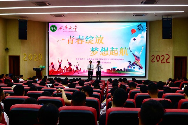 点击:338 三江之滨,翠屏山旁,西华学子,梦想起航。为持续给bv伟德国际体育官方网站宜宾校区2022届毕业生送上祝福寄予期望,坚定青年学子奋进新征程,永远跟党走的决心与信心,bv伟德国际体育官方网站团委于2022年5月23日晚19:00在一教101报告厅举办“‘青春绽放,梦想起航’——喜迎党的二十大暨bv伟德国际体育官方网站宜宾校区2022届毕业晚会”,学院2018级辅导员薛敏及260名毕业生参加此次晚会,现场气氛热烈、高涨。