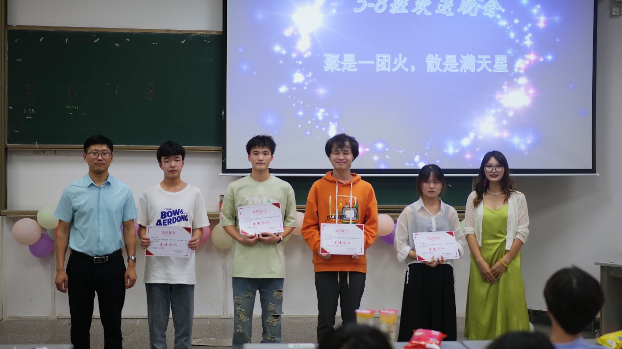点击:177 6月15日晚,18:18分由辅导员廖傲梅老师主办的“聚是一团火,散是满天星”晚会如期举行。机械学院李强书记、辅导员朱利老师及机械五至八班全体同学应邀与会,共度这个欢乐而温暖的夜晚。