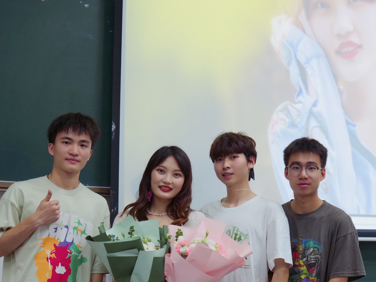 本次晚会最激动人心的时刻要属贯穿整个晚会的抽奖环节,廖傲梅老师精心为大家挑选了各式各样的礼品。每每滚动的大屏幕亮起大家的名字,总是回响起一阵接一阵的尖叫。最后,她还为所有同学送上了亲手制作真知棒小花束,这份师生之间专属的仪式感真诚又烂漫。聚光灯下精彩纷呈,帷幕之后亦有感动。同学们也为廖傲梅老师准备了惊喜花束,大家为师生情谊相互奔赴,彼此成长亦彼此见证。