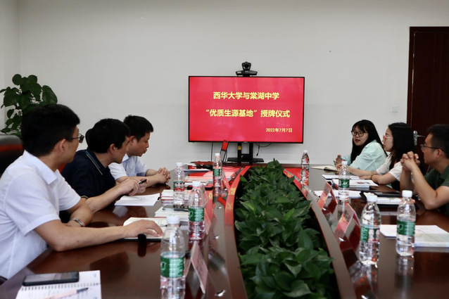 点击:418 为提高生源质量,进一步加强高校与中学的衔接交流,建立双方友好合作长效机制,7月7日,bv伟德国际体育官方网站党委书记郑宇、院长张均富、党委副书记李强、辅导员陈莉萍一行4人赴棠湖中学进行座谈交流和招生宣讲,并举行西华大学“优质生源基地”授牌仪式。棠湖中学副校长任飞扬、学导处副主任王宗伟和雷云华等参加座谈交流,仪式由任飞扬主持。