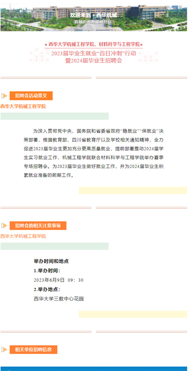 西华大学bv伟德国际体育官方网站2023届毕业生就业“百日冲刺”行动暨2024届毕业生招聘会