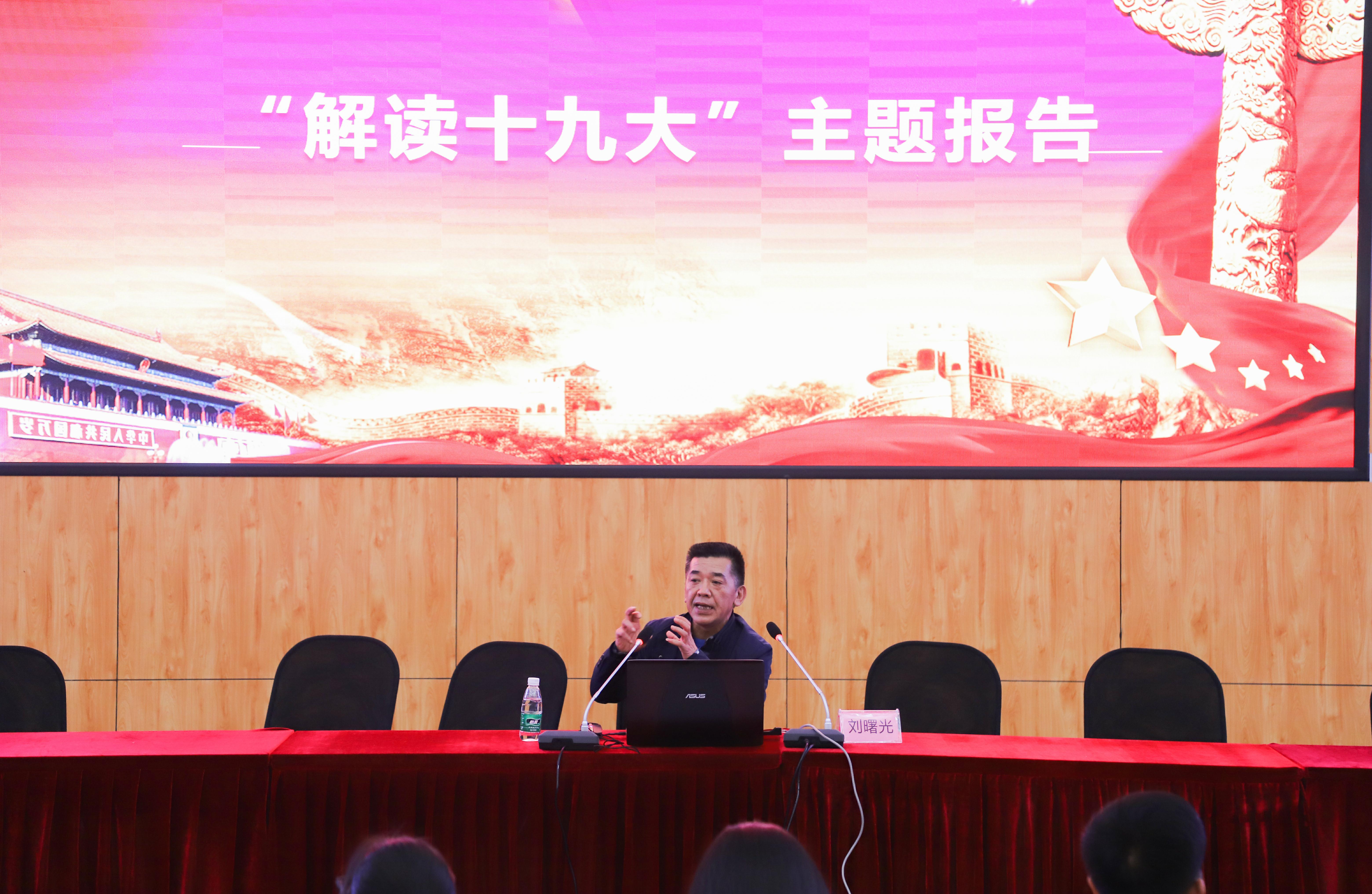 刘曙光从党的十九次全国代表大会概况、从十八届一中全会到七中全会重点回顾、习近平总书记十九大报告内容精解、“做合格党员,不忘初心,永远跟党走”和党章修改的13个要点等五个方面进行了全面而详细的解读。