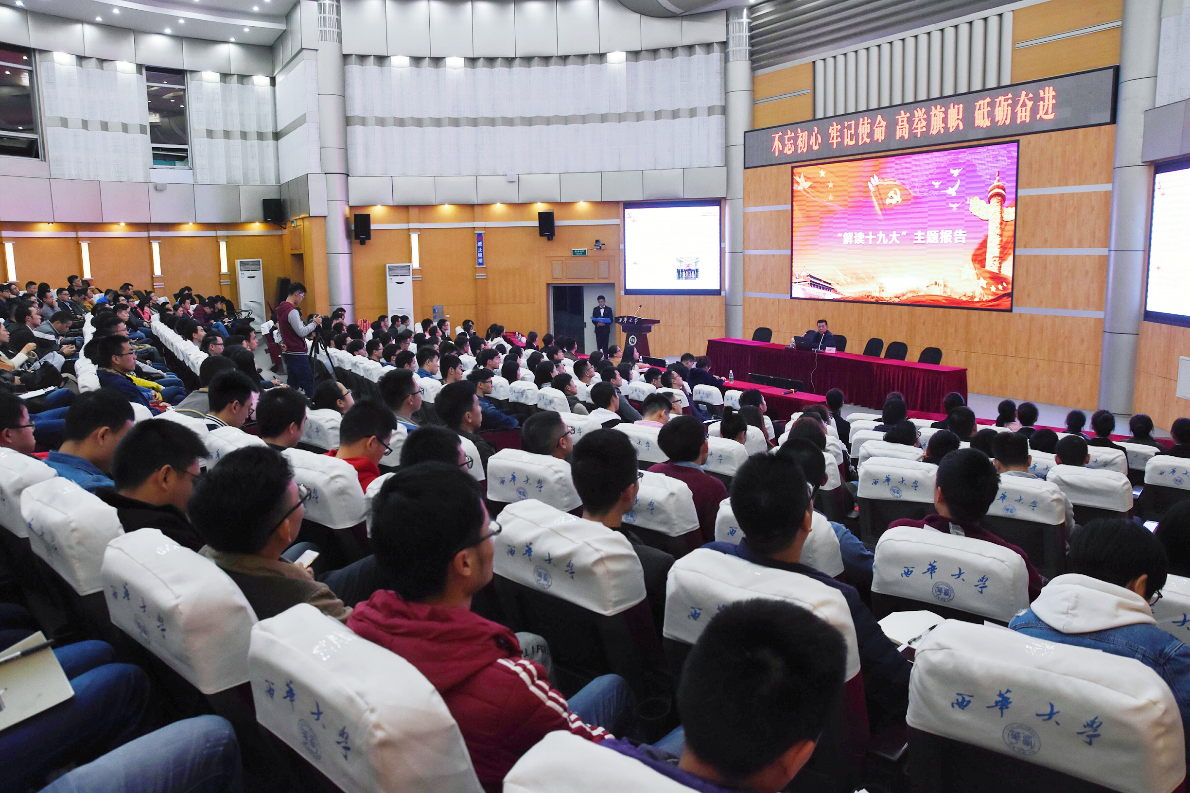 会上,刘曙光首先带领大家回顾了十九大会议召开的全过程。他传达了学习贯彻党的十九大精神中央宣讲团动员会精神,教育部党组书记、部长陈宝生在教育部召开的直属系统传达学习党的十九大精神大会上的讲话精神,省委书记王东明在四川省学习党的十九大精神大会上的讲话精神以及学校党委书记边慧敏在西华大学传达学习党的十九大精神会上的讲话精神。他强调,学院学习宣传贯彻党的十九大精神要紧紧围绕习近平新时代中国特色社会主义思想这条主线,结合学院实际情况,精心组织安排,严格贯彻落实,努力把全院师生的思想和行动统一到党的十九大精神上来。