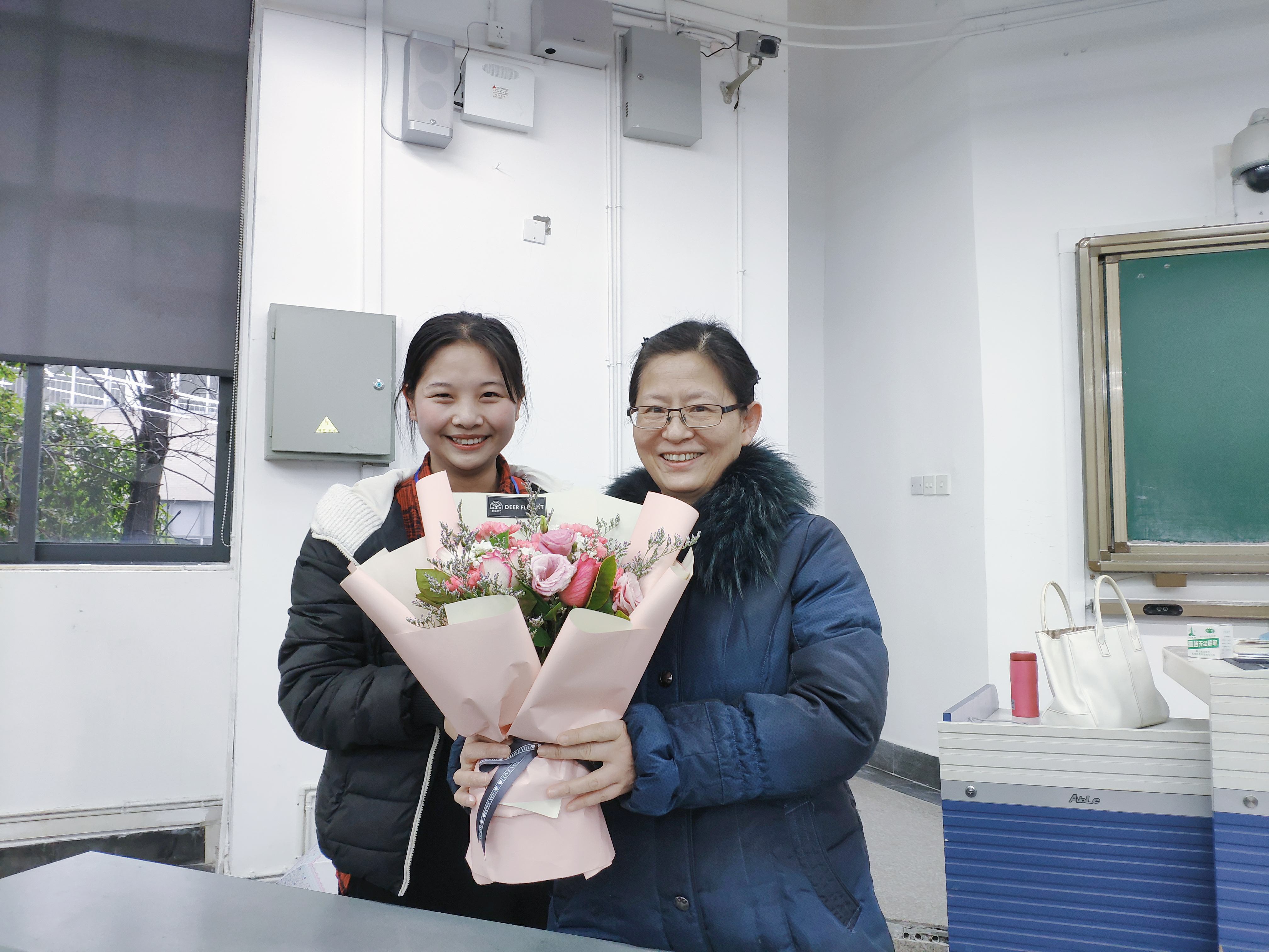 在妇女节来临前夕,学院提前为女教师们备好了节日礼物,以表达对女性教职工的尊重与关爱,向女性教职工致以节日的慰问。节日当天,仍有部分女老师坚守讲台,以责任与爱心辛勤教学、默默奉献,学院组织学生干部们来到老师们当天上课的教室,为学院女教师们献上了美丽的鲜花和问候的卡片,传达了学院对女教师的祝福。女老师们感受到节日的惊喜和欢乐,脸上都洋溢起了幸福的微笑。